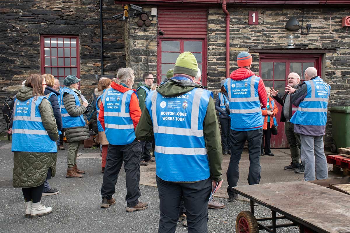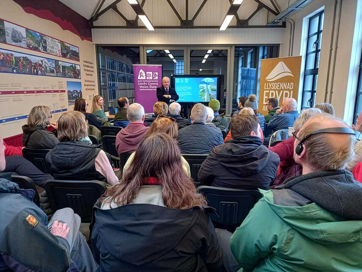 Wedi’i drefnu gan Gyngor Gwynedd, cafodd y Llysgenhadon sgyrsiau gan Dr Dafydd Gwyn ar Dirwedd Llechi Gogledd-orllewin Cymru, Paul Lewin, Cyfarwyddwr a Rheolwr Cyffredinol Rheilffyrdd Ffestiniog ac Eryri, ar ein Prosiect Dehongli a Boston Lodge a’r cyfleoedd gwirfoddoli y mae wedi’u creu.
