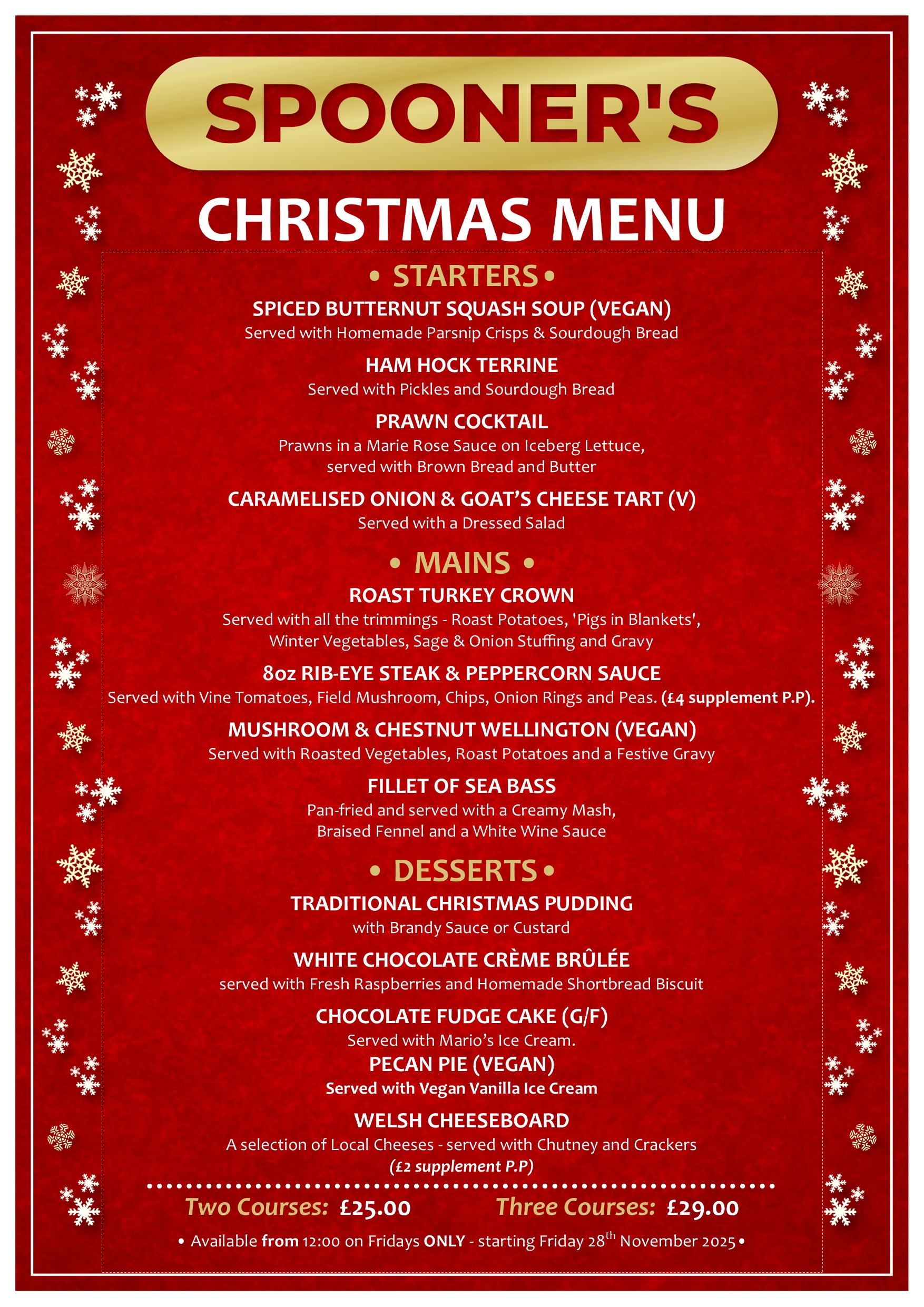 £25.00 – Two Courses